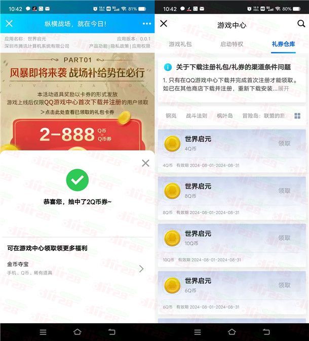 世界启元QQ预约领2-888个Q币卡券 手游上线可兑换领取