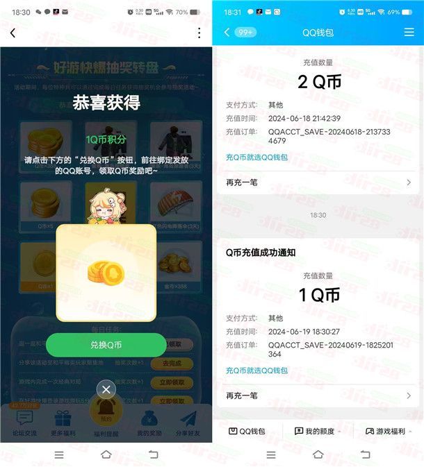 好游快爆和平精英新老用户抽1-388个Q币 亲测中1Q币秒到