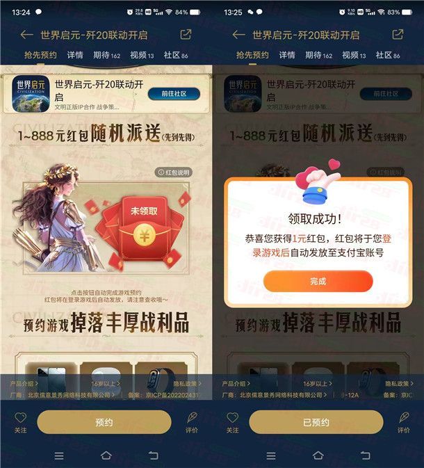小米游戏中心预约世界启元领1-888元现金红包 手游上线到账