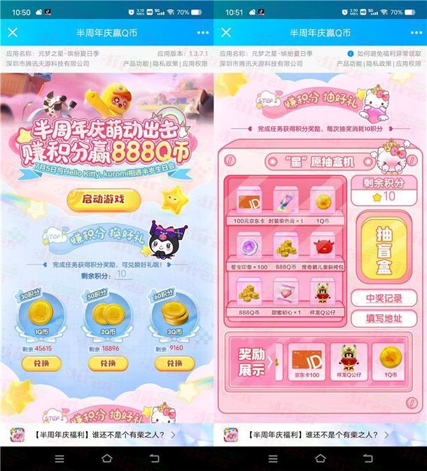 元梦之星QQ半周年庆盲盒抽1-888个Q币 还可兑换1-3个Q币