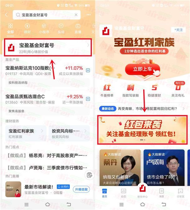 小编提示:打开支付宝APP搜索【宝盈基金财富号】进去,点击横幅【红包来袭】进去,依次关注可以领到9个支付宝消费红包,合计加起来0.92元秒到支付宝卡包里,可以在支付宝APP付款的时候抵扣,也可以变现
