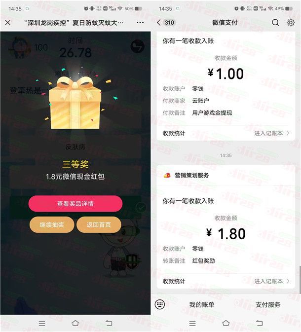 龙岗疾控夏日防蚊灭蚊大作战抽1.8-88.8元微信红包 亲测中1.8元