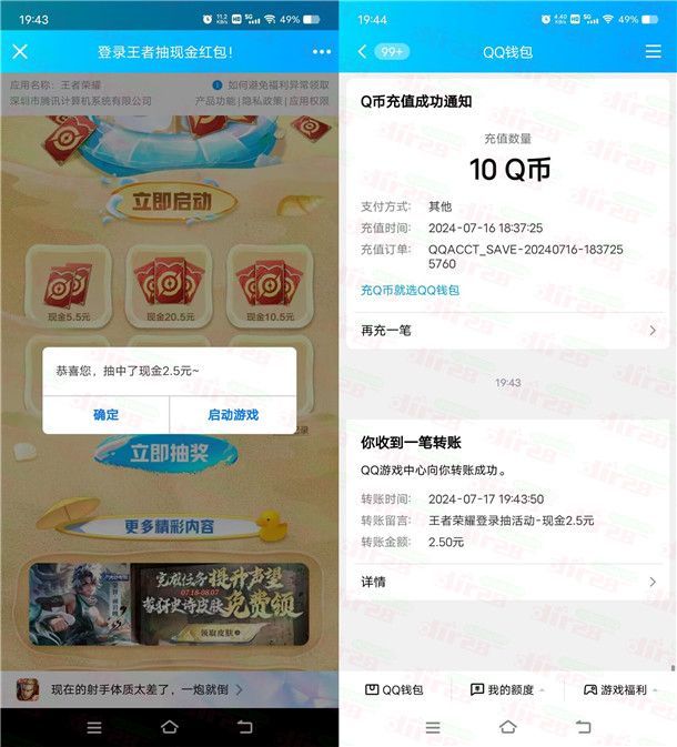 王者荣耀QQ手游登录抽1.5-20.5元现金红包 亲测中2.5元秒到