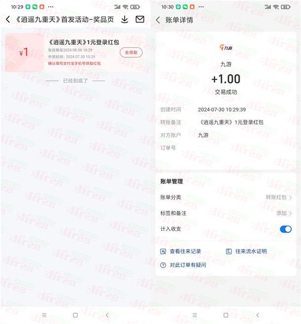 九游下载逍遥九重天活动抽1-888元支付宝现金 亲测中1元秒到