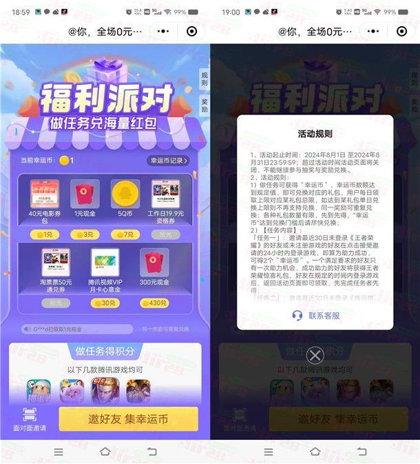 这是腾讯游戏人生的一个新活动,同样微信和QQ都可以去参加,通过打开微信和手机QQ进去活动里,进去完成页面指定的任务、以及邀请好友助力可以增加幸运币,累积幸运币可以兑换1元、300元现金红包、5个Q币,兑换的奖品数量限量,如果兑完了页面也会有提示。