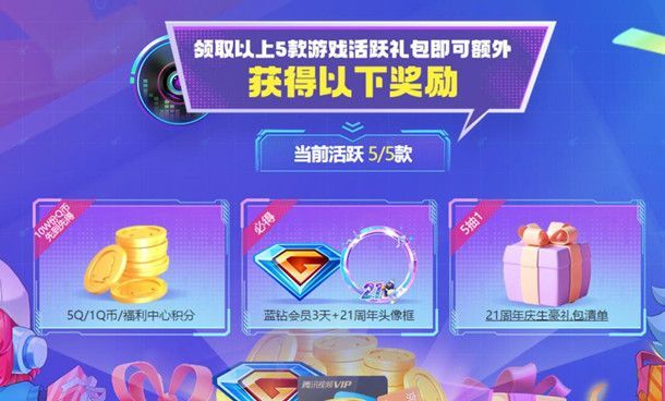 小编提示:下载打开电脑版“QQ游戏大厅”,登录后点击左侧【周年庆】,下拉页面随便点5个游戏下载然后领礼包,然后继续下拉页面领直接领1-5个Q币和3天蓝钻,秒到,限量10万份