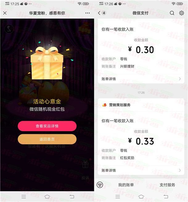 华夏基金宠粉感恩有你2个活动抽随机微信红包 亲测中0.63元