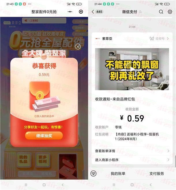 索菲亚小程序狂欢周年庆活动抽随机微信红包 亲测中0.59元