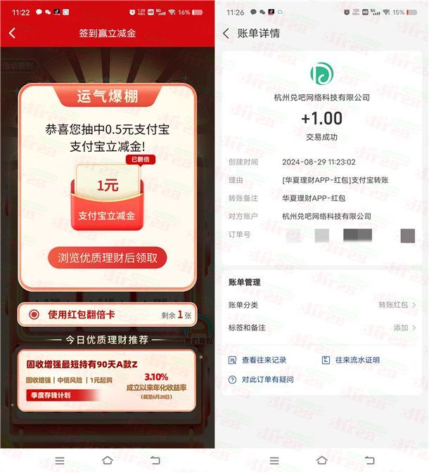 华夏理财逛理财工厂2个活动抽最高1888元支付宝现金 亲测中1元