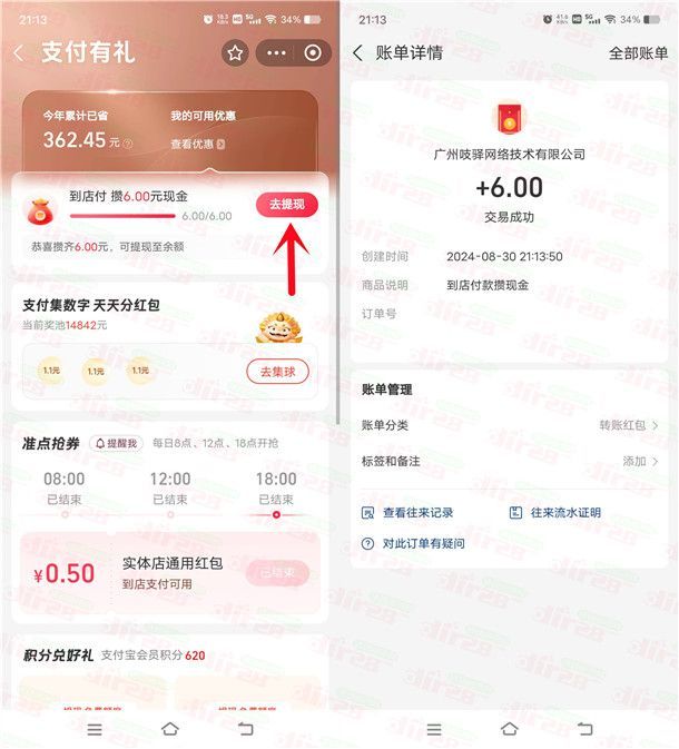 支付宝支付有礼攒现金领2-10元现金红包 亲测6元秒到余额