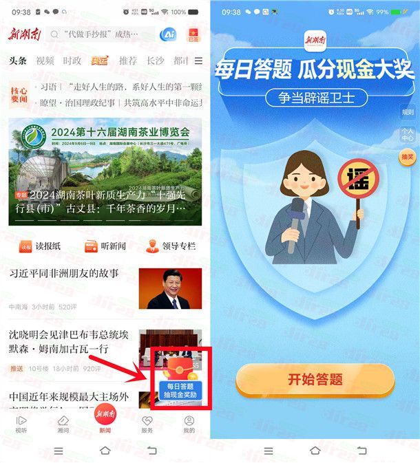 新湖南APP每日答题签到活动抽随机微信红包 亲测中0.55元