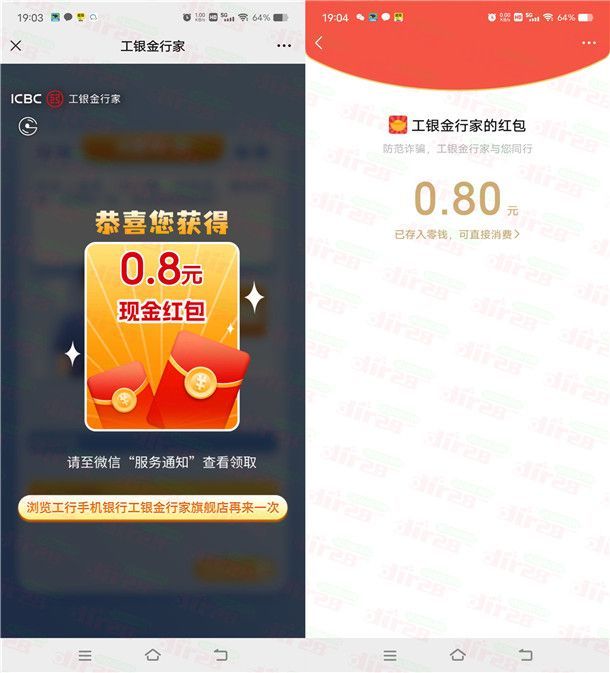 工银金行家反诈小测试抽最高8.8元微信红包 亲测中0.8元秒推