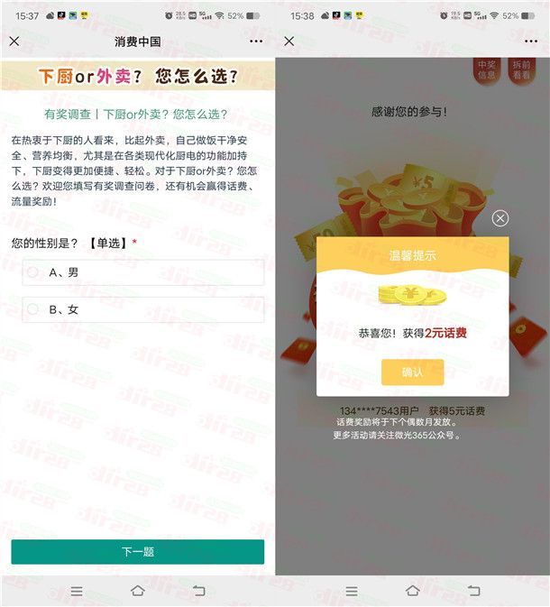 小编提示:2个活动都可以去,微信扫码下拉到底阅读原文进去,完成几道简单的问卷题提交后可以拆开福袋抽奖,中到的话费次月到,非必中