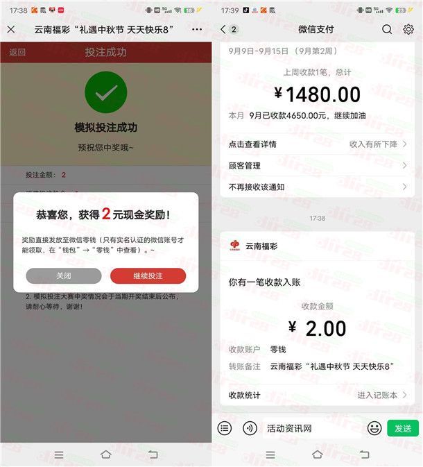 云南省福彩礼遇中秋节模拟投注抽2-58元微信红包 亲测中2元