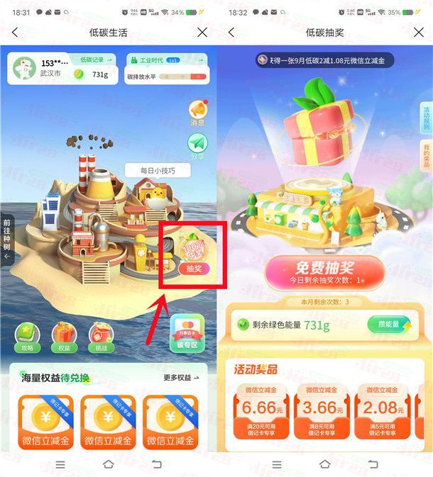 建行生活低碳生活抽1.08-6.66元微信立减金 每天可抽1次
