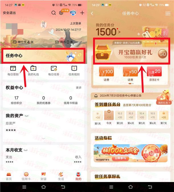 建行任务中心简单开宝箱抽5-20元京东卡、手机话费 亲测中10元