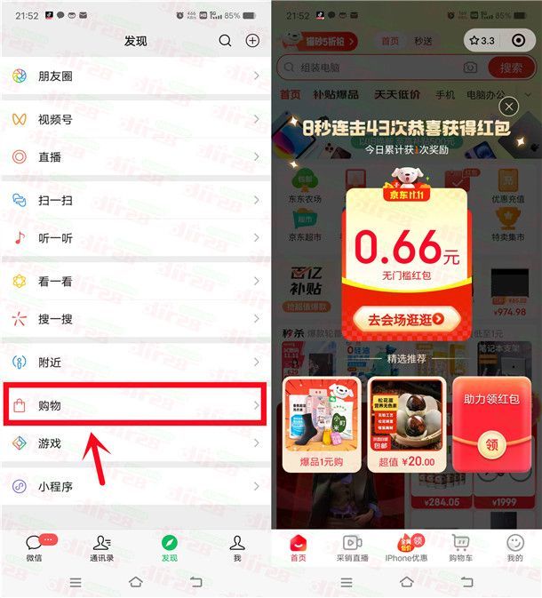 立即参与:打开微信APP–发现–购物 点击进去参加