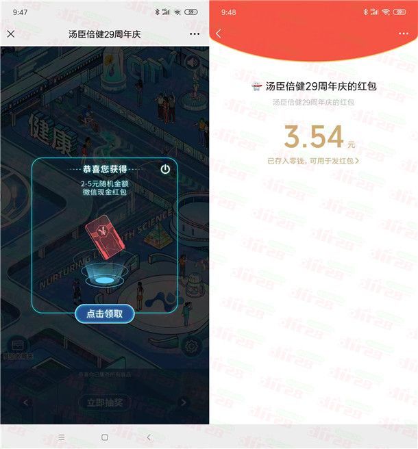 参加汤臣倍健举办的29周年庆小游戏抽2万个红包活动,通过打开微信进去活动里,只要在小游戏中找出页面顶部提示的12个展品就可以进去抽奖,每个微信每天都可以抽1次,有机会中到1-100元微信红包、实物,小编测试中到3.54元红包秒推,如果没中可以换号或者第二天再去,非必中。