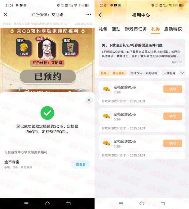 航海王QQ预约领取18个Q币卡券 手游上线后可兑换领取