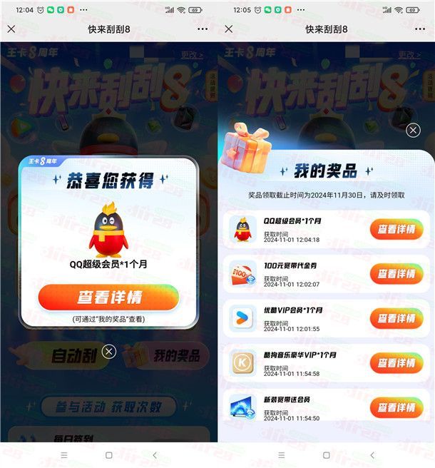 联通刮刮8活动抽各类会员 亲测中QQ超级会员、优酷会员秒到