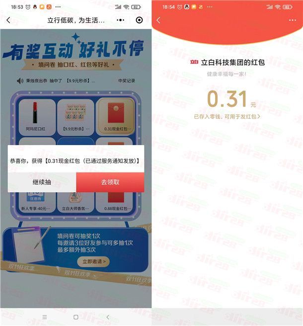 立白低碳生活加薪简单问卷抽微信红包 亲测中0.31元秒推