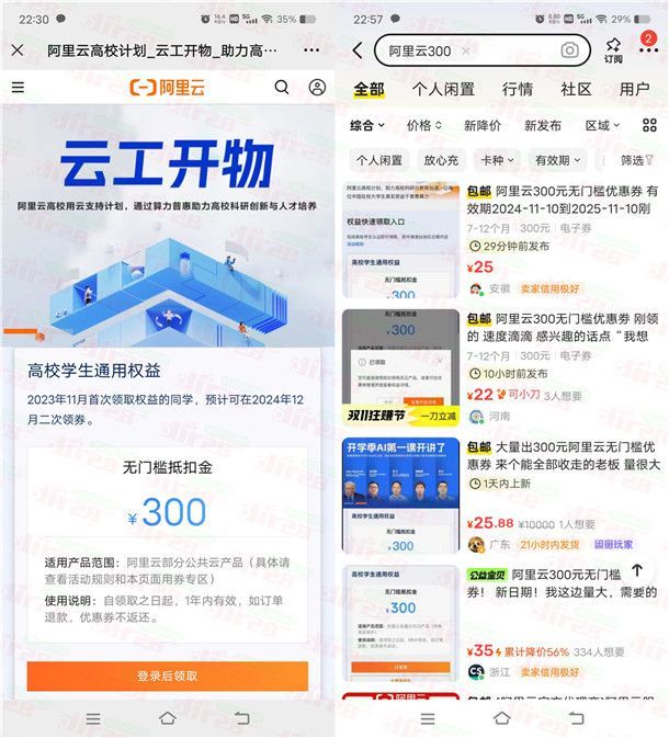 阿里云大学生每年领300元无门槛券 可0元买1年服务器或卖给别人