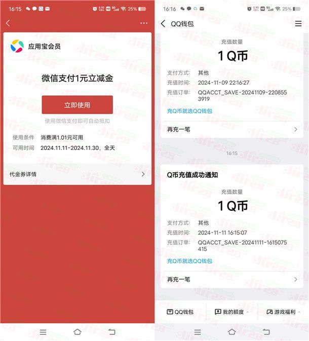 参加腾讯应用宝举办的积分兑福利活动,通过打开最新版本的“应用宝”APP,点底部【福利】进去开启会员后会免费赠送1000个积分,可以直接兑换1元微信立减金或者1个Q币,兑换后还会再送1000个积分,还可以再兑换1次,都是秒到的,数量限量。