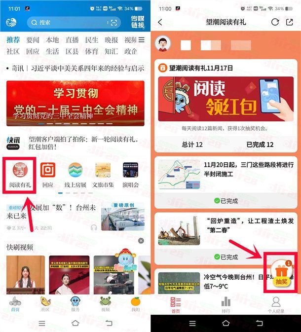 小编提示:下载打开“望潮”APP,首页点【阅读有礼】进去,每天浏览12篇文章可以抽奖1次(点进去再返回就行),刚中0.33元,非必中