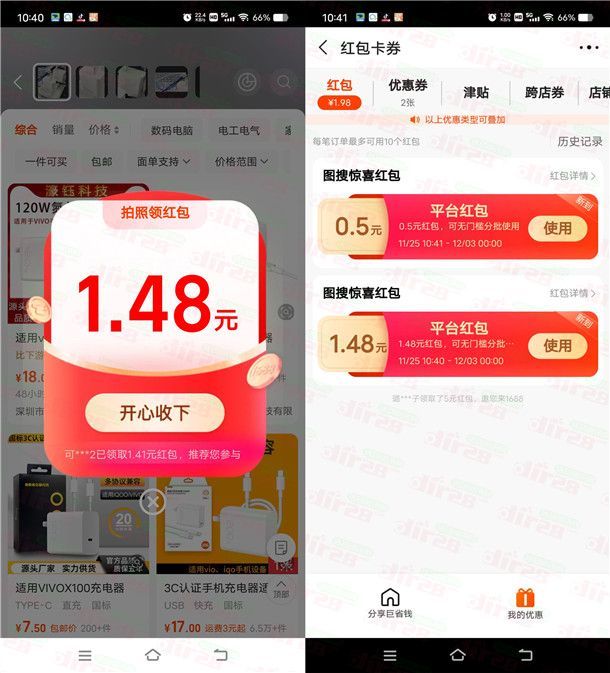 这是1688的拍照领红包活动,跟前段时间的淘宝拍照领红包活动类似,通过打开“阿里巴巴”APP,首页点右上角拍照图标,再随便找个物品拍照,可以领到一个随机金额无门槛红包,每天可以领到2个红包,每天都能去,红包可以叠加使用,在1688里购买商品无门槛叠加抵扣。