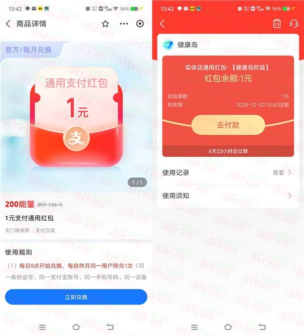 支付宝悦动健康岛简单兑换1-5元支付宝通用红包 亲测1元秒到