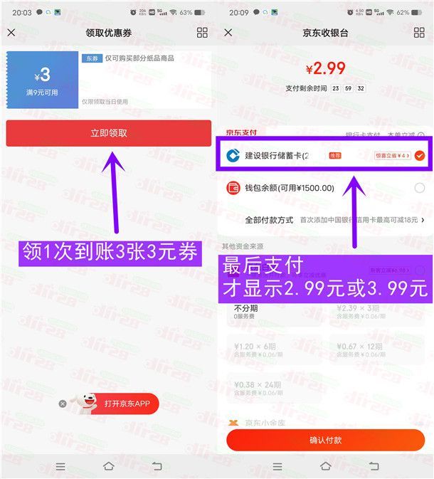 1、打开“中国建设银行”APP搜索【京东】进去,点【PLUS】进去弹窗会得到3元支付券,下拉页面支付0.01元再领4元支付券