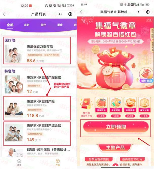 未雨绸缪、保驾护航:新购指定3款互联网保险产品中的任一款产品,1个工作日后即可点亮此两个徽章