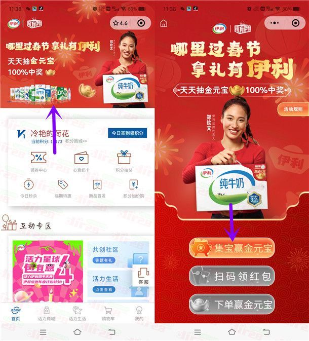 活力伊利春节集卡活动抽最高188元微信红包、实物金元宝