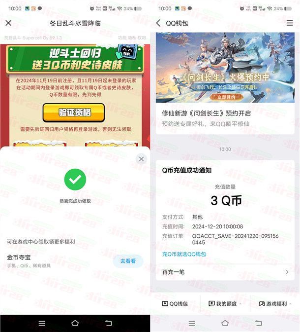 荒野乱斗QQ手游2个回归用户活动领3-6个Q币 亲测6Q币秒到