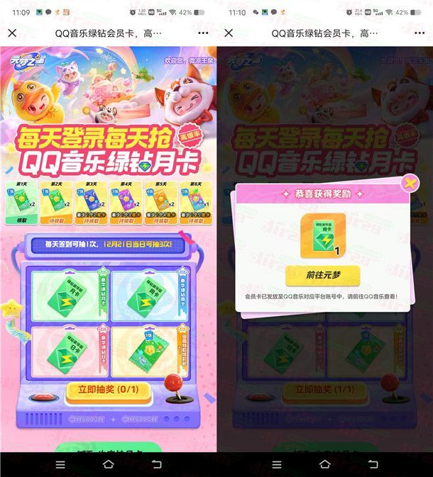 元梦之星2个活动抽1-30天QQ音乐豪华绿钻、领1-10元现金红包