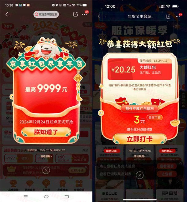 京东年货节超级红包 每天必中1个超级现金红包 最高9999元