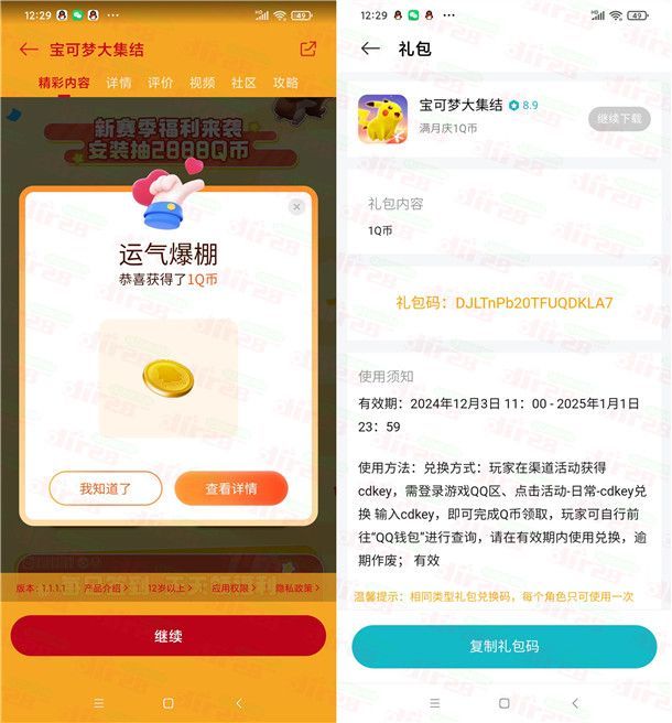 小米游戏中心宝可梦抽1-2888个Q币 亲测中1Q币 需手动兑换