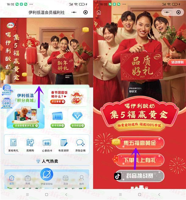 活动地址:微信打开:#小程序://伊利低温会员福利社/MXGhpydGHKWSE6r