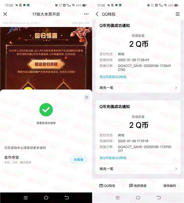 部落冲突QQ手游回归老用户领2-4个Q币 亲测4Q币秒到