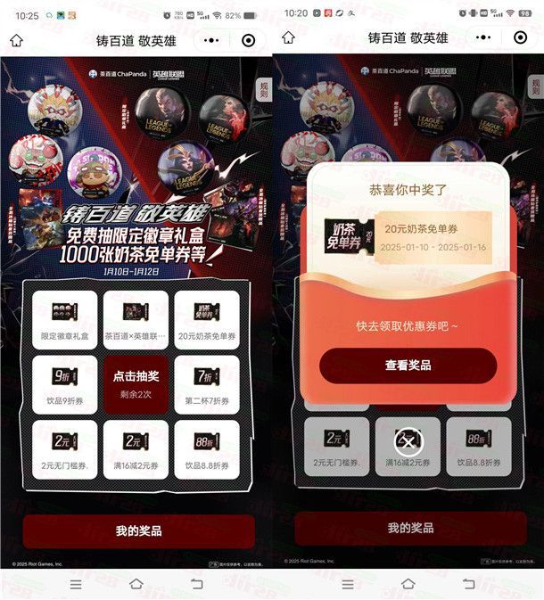 茶百道铸百道敬英雄抽1000张大杯奶茶免单券 亲测中1个免单