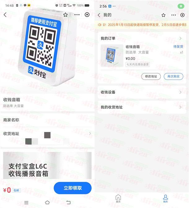 小编提示:打开支付宝APP扫描下面二维码进去,部分人可以0元撸1个支付宝收钱音箱包邮,也有人在闲鱼卖到60元一个