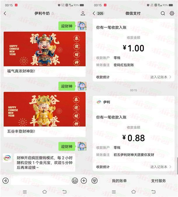 伊利牛奶初五迎财神公众号抽8万个微信红包 亲测中0.88元