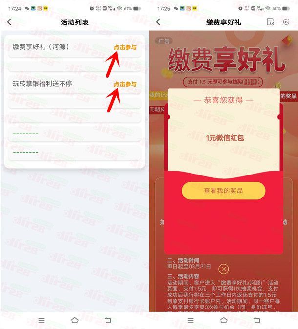 小编提示:手机扫描下面二维码跳转到中国农业银行APP,里面2个活动都可以去,第一个活动每支付1.5元可以抽1次,第二个活动每支付1.1元抽1次,放心支付,会原路退回不会反撸,2个活动都必中1元红包