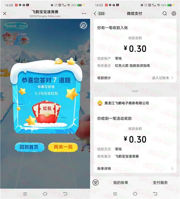 星妈会飞鹤宝宝速滑赛抽0.3-8.8元微信红包 亲测中0.3元推零钱