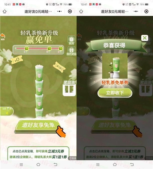 CoCo小程序邀友助力领1张轻乳茶免单券 共10万份奶茶免单