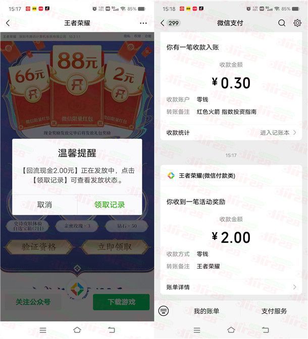 王者荣耀微信回归老用户领2-88元微信红包 亲测中2元秒推