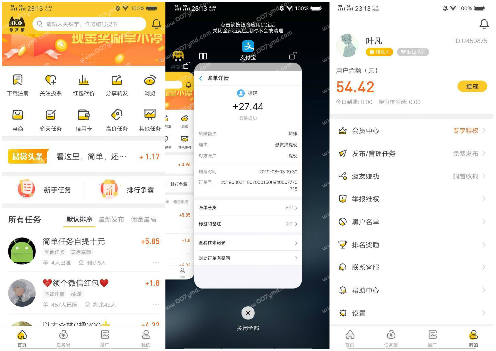 软件介绍:一款任务兼职类平台,它不收取任何费用,下载即做,任务奖励秒提现,适合学生党无聊的时候做一做任务,亲测俩小时赚了30+