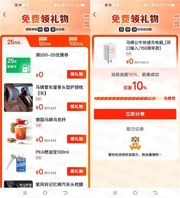 途虎养车0元撸3个实物包邮 需邀请好友助力领取