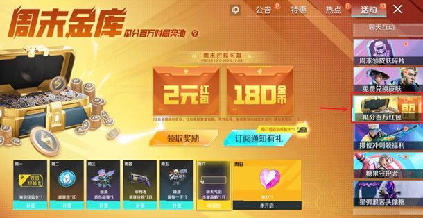 参加高能英雄举办的周末金库瓜分百万对局奖励活动,通过打开高能英雄app手游进去活动里,每周可以开启1次奖励,如果中到红包后再去游戏任意对局1次,就可以回到活动页面领取红包,领到的红包直接到账微信钱包/QQ钱包余额里,数量限量。