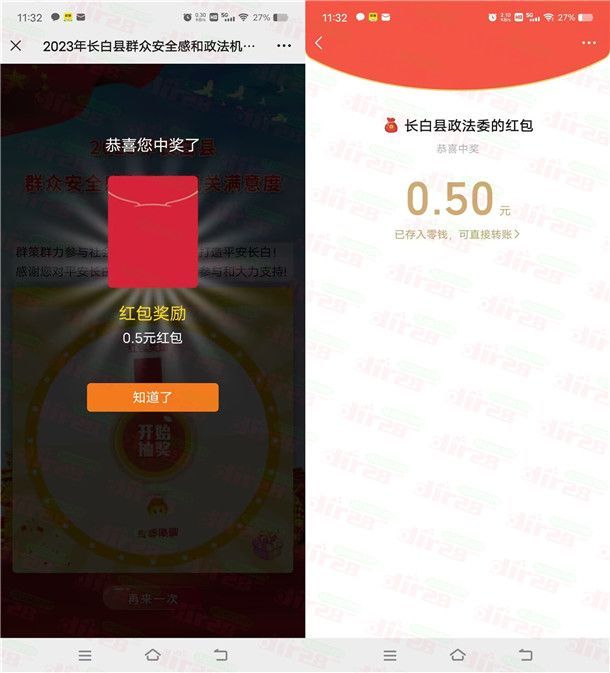 长白政法群众安全感问卷活动抽随机微信红包 亲测中0.5元